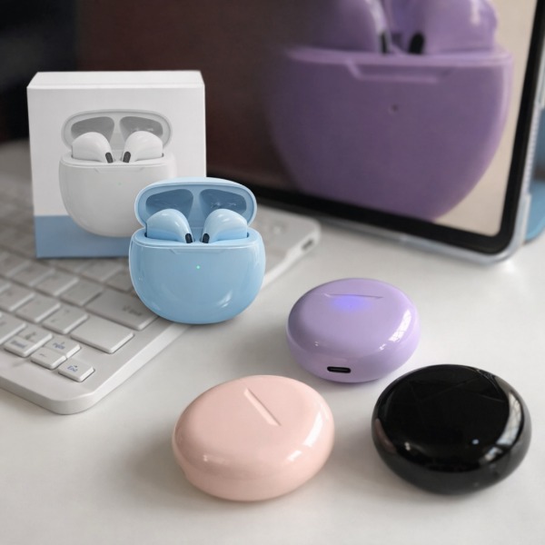 Los Audífonos Bluetooth PRO6 son la combinación perfecta de estilo y funcionalidad. Disponibles en colores Blanco, Violeta, Rosado y Negro, estos audífonos in ear ofrecen una experiencia de sonido envolvente sin cables que limiten tu movimiento. Diseñados para acompañarte en cualquier momento del día, destacan por su comodidad y facilidad de uso.