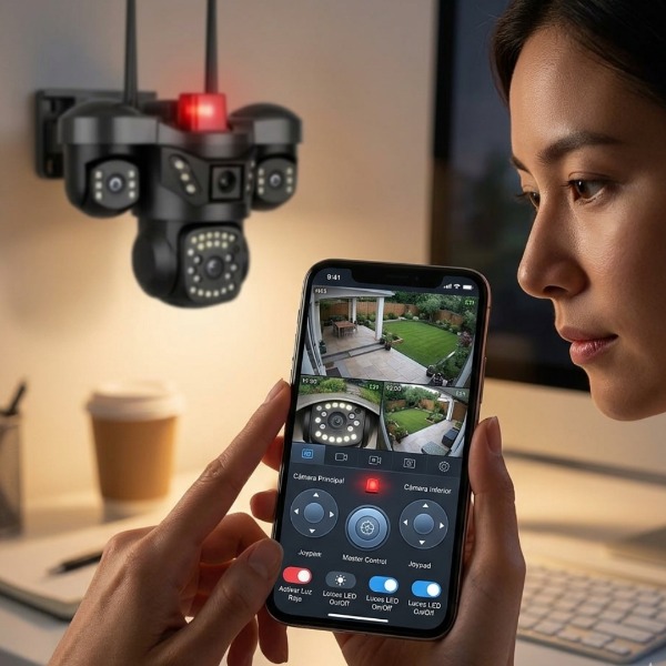 SKU: 001336 Categorías: Artículos Electrónicos, Articulos Hogar, Cámaras de Seguridad y Alarmas, En Oferta, Hogar, Otros, Tecnología y Electrónica Etiquetas: 3 cámaras, APP V380PRO, cámara app v380 pro, Cámara con 3 cámaras, camára con aplicacion yosee, camara con vision nocturna, camara de seguridad