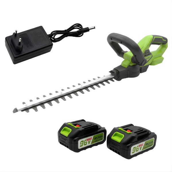 Equipado con dos baterías de 98V, este cortasetos proporciona una duración de batería de hasta 4 horas, permitiendo realizar tareas prolongadas sin interrupciones. El tiempo de carga es de solo 2 horas, lo que asegura que siempre esté listo para usar. Su mango ergonómico facilita el manejo, brindando comodidad durante el uso.