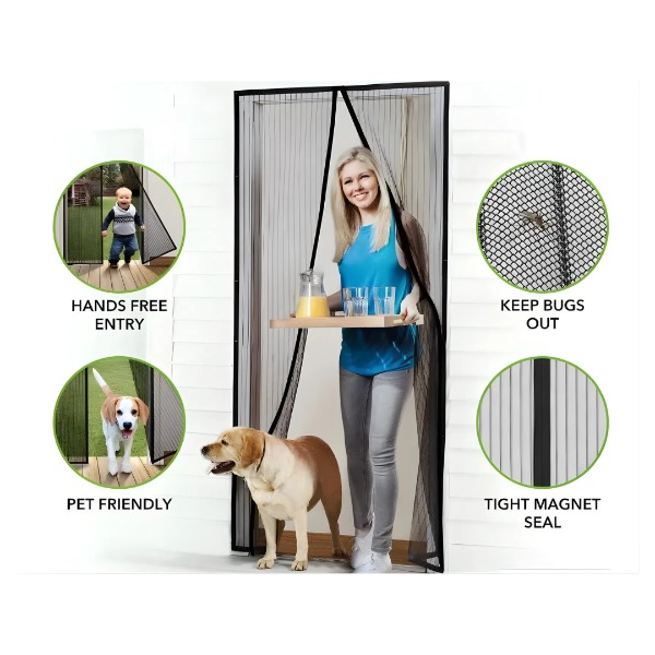La cortina para puerta malla anti mosquito en color negro es la solución ideal para mantener tu hogar libre de insectos sin sacrificar la ventilación. Su diseño de malla permite el paso del aire fresco, creando un ambiente agradable mientras protege tu espacio de los molestos mosquitos y otros insectos.