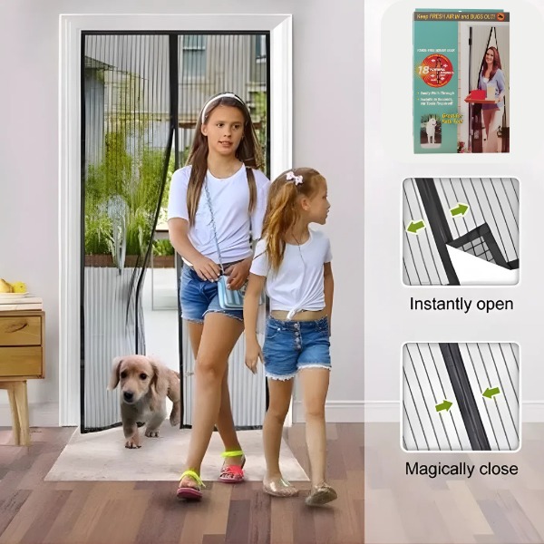 Además, su diseño elegante en color negro se integra perfectamente con la decoración de tu hogar, aportando un toque moderno y sofisticado. Disfruta de tus momentos al aire libre sin preocuparte por los insectos, gracias a esta cortina que combina estilo y funcionalidad.