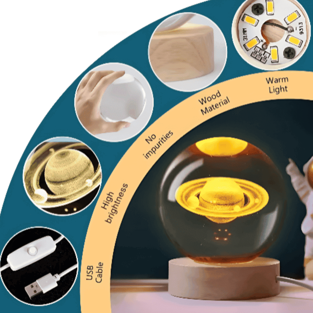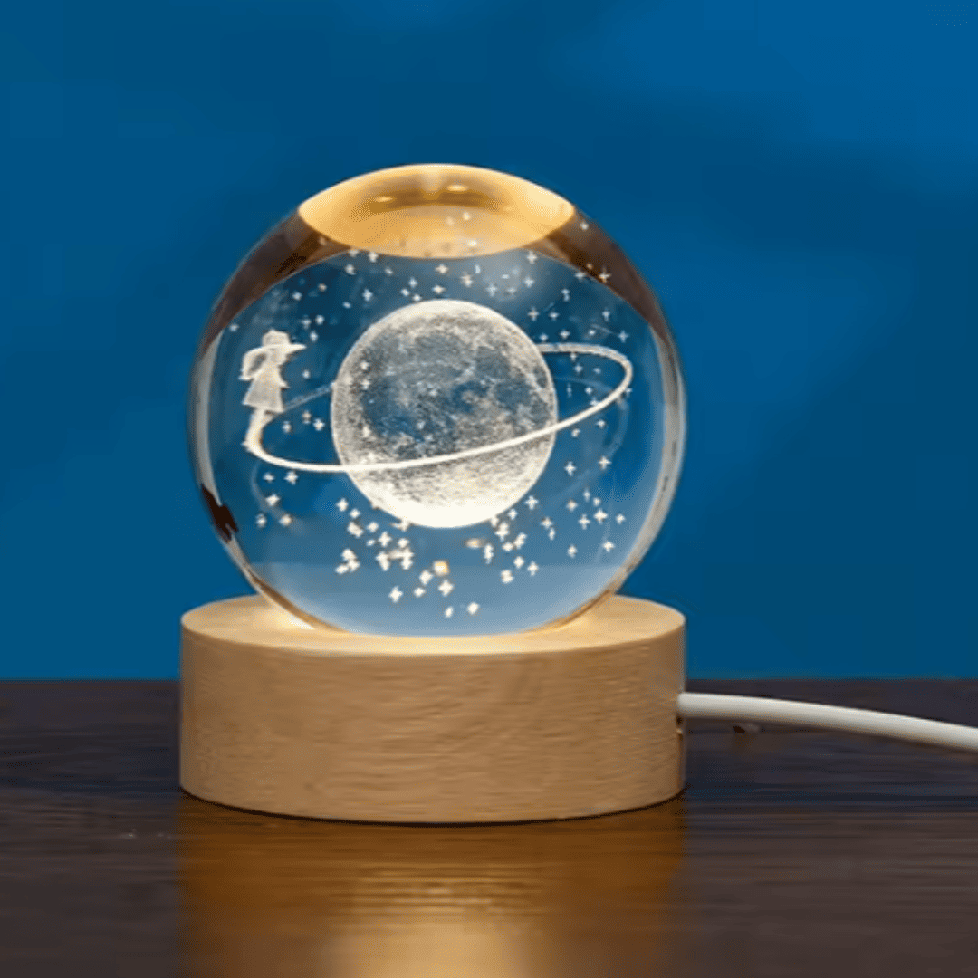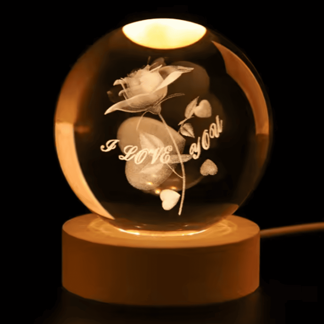 Lámpara Bola Led de Cristal 3D con Interruptor
