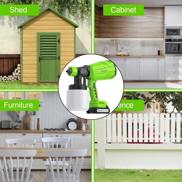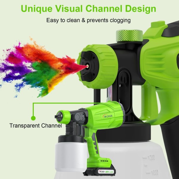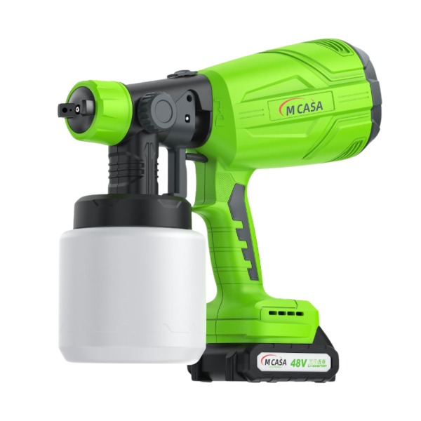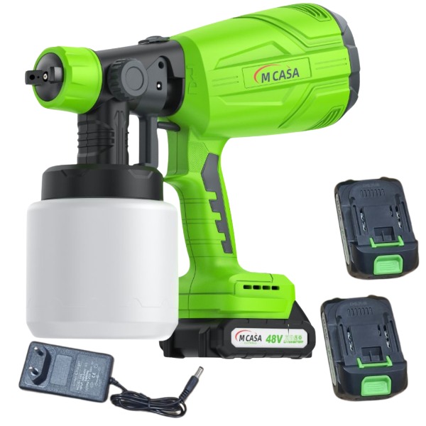 Este modelo cuenta con dos baterías de 48V, lo que asegura una autonomía prolongada para trabajar sin interrupciones. Su diseño inalámbrico facilita el acceso a lugares de difícil alcance y evita enredos, lo que mejora la productividad en cada tarea. La pistola es adecuada para una variedad de tipos de pintura, lo que la convierte en una opción versátil para tus proyectos de decoración y renovación.