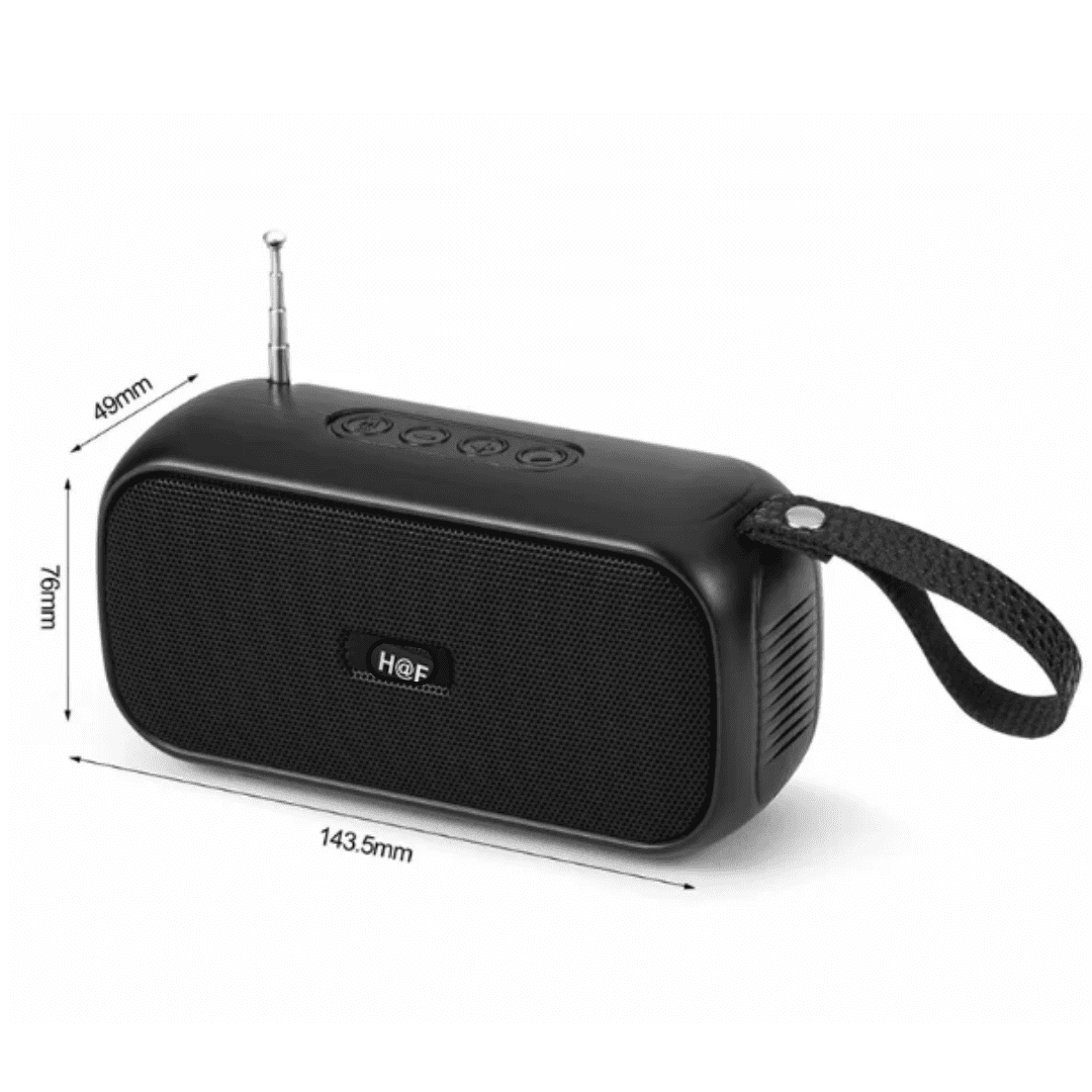 Ya sea que estés en la playa, un picnic o simplemente relajándote en casa, este radio parlante ofrece la combinación perfecta de funcionalidad y portabilidad. Experimenta la libertad de escuchar tu música sin restricciones con el HF-F108 y transforma cada momento en una ocasión especial.