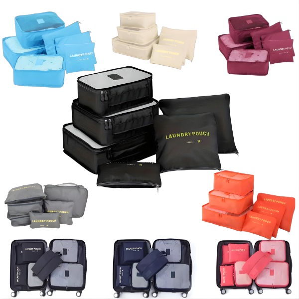 Este set con 6 organizadores de distintas medidas te permite guardar en tu valija tu ropa zapatos cosméticos de una manera ordenada y práctica.